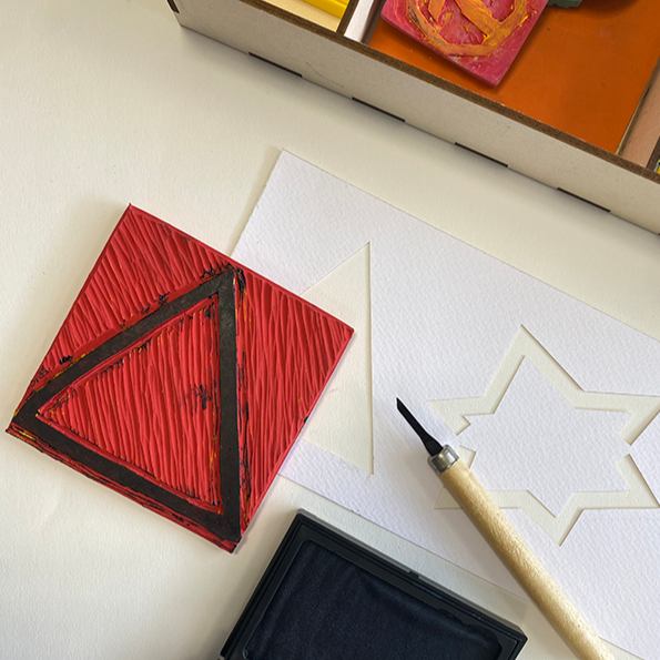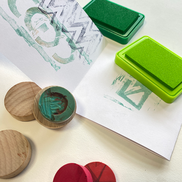 Stamp It is a quick mediation workshop designed for stands and public events. Based on real surveys of three engraved slabs, stencils were created as tools for making stamps. Participants are invited to recreate the graffiti using these stamps on various paper supports, such as leaflets, posters, or murals, juxtaposing and reinterpreting the shapes. The repetitive action allows participants to understand the motifs through practice and encourages a creative reappropriation of the Albalat graffiti, transforming the archaeological fragment into a contemporary form.