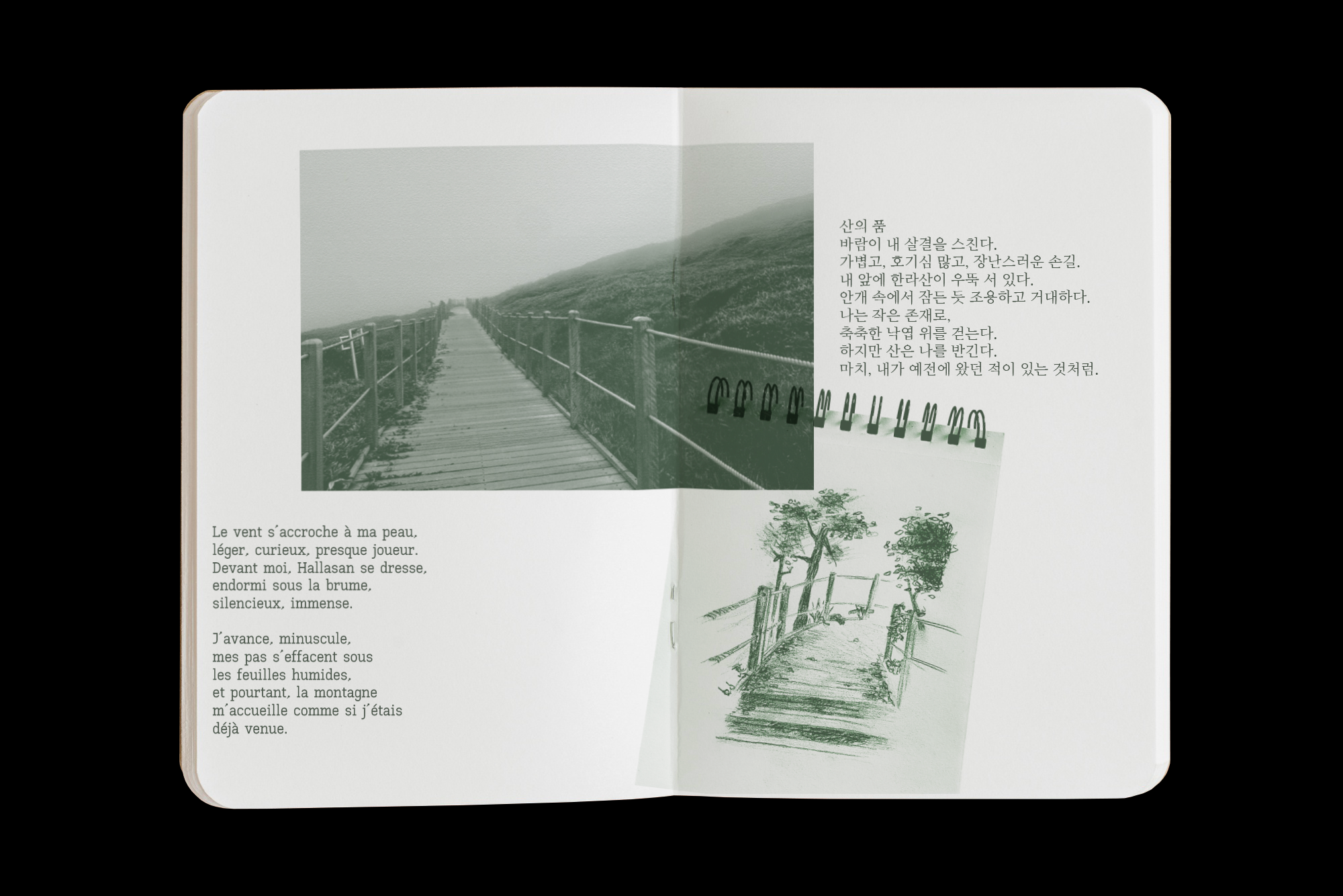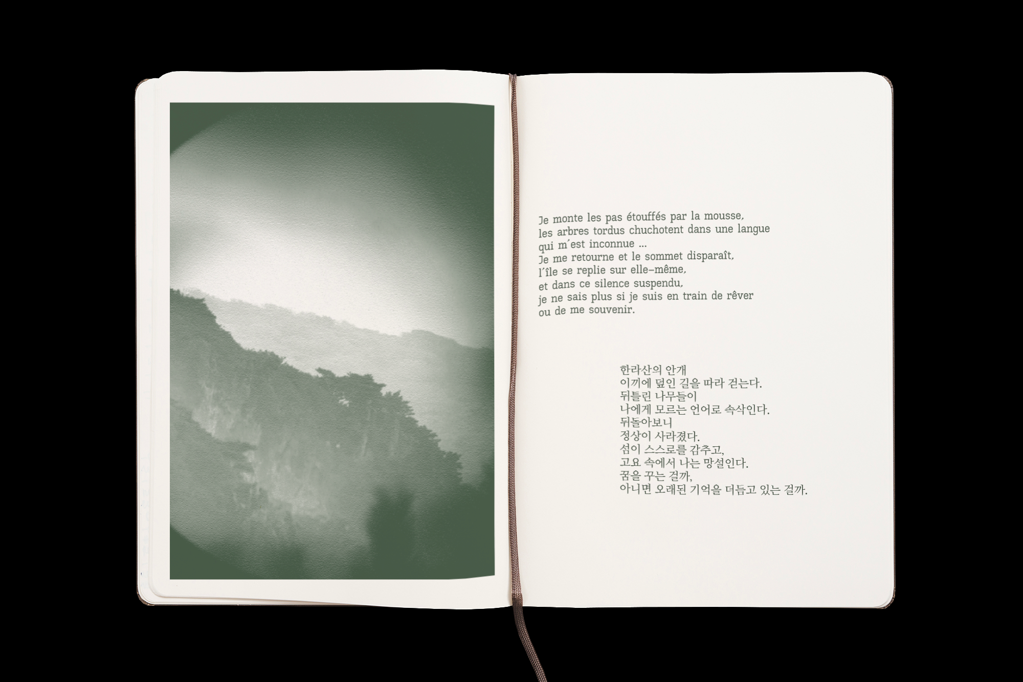 Jeju Poems est un projet personnel mêlant poésie et dessin, né d’un voyage sur l’île de Jeju en Corée du Sud, à la suite d’une randonnée sur le mont Hallasan.