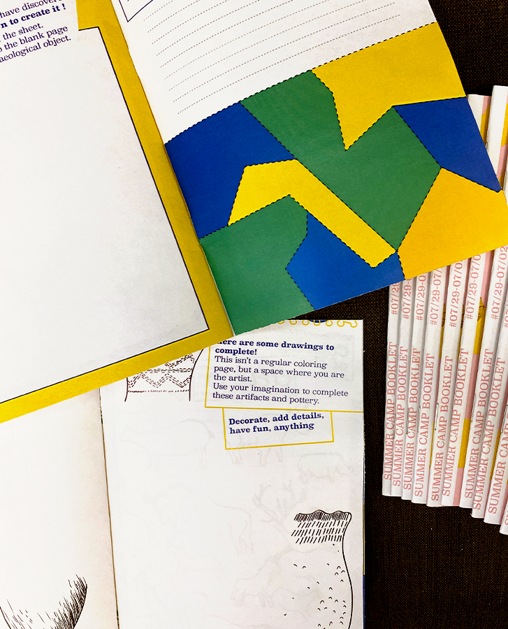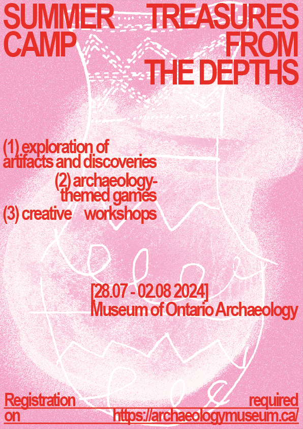 Ce projet réunit la conception d’un carnet pédagogique et d’un poster promotionnel pour le Summer Camp du Museum of Ontario Archaeology, autour du thème « Treasure of the Deep ». Distribué individuellement, le carnet accompagne chaque enfant tout au long de la semaine et devient un espace personnel d’expérimentation, de réflexion et de divertissement. Chaque jour, les enfants y complètent des activités en lien avec les ateliers du musée, à travers des énigmes, des découpages, des compositions et des jeux graphiques.